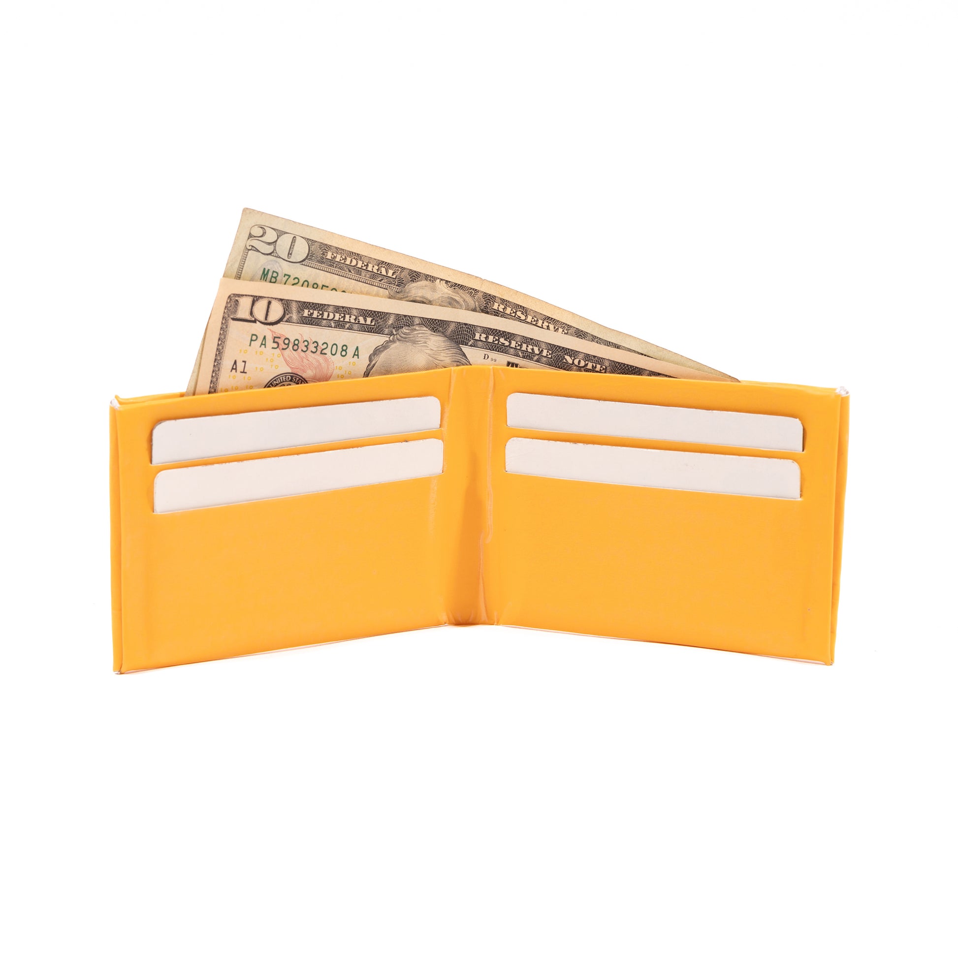 Handmade slim wallet crafted in San Francisco. Constructed from laminated photography and durable 3 mil vinyl laminate. Features four card slots and a dedicated pocket for cash.