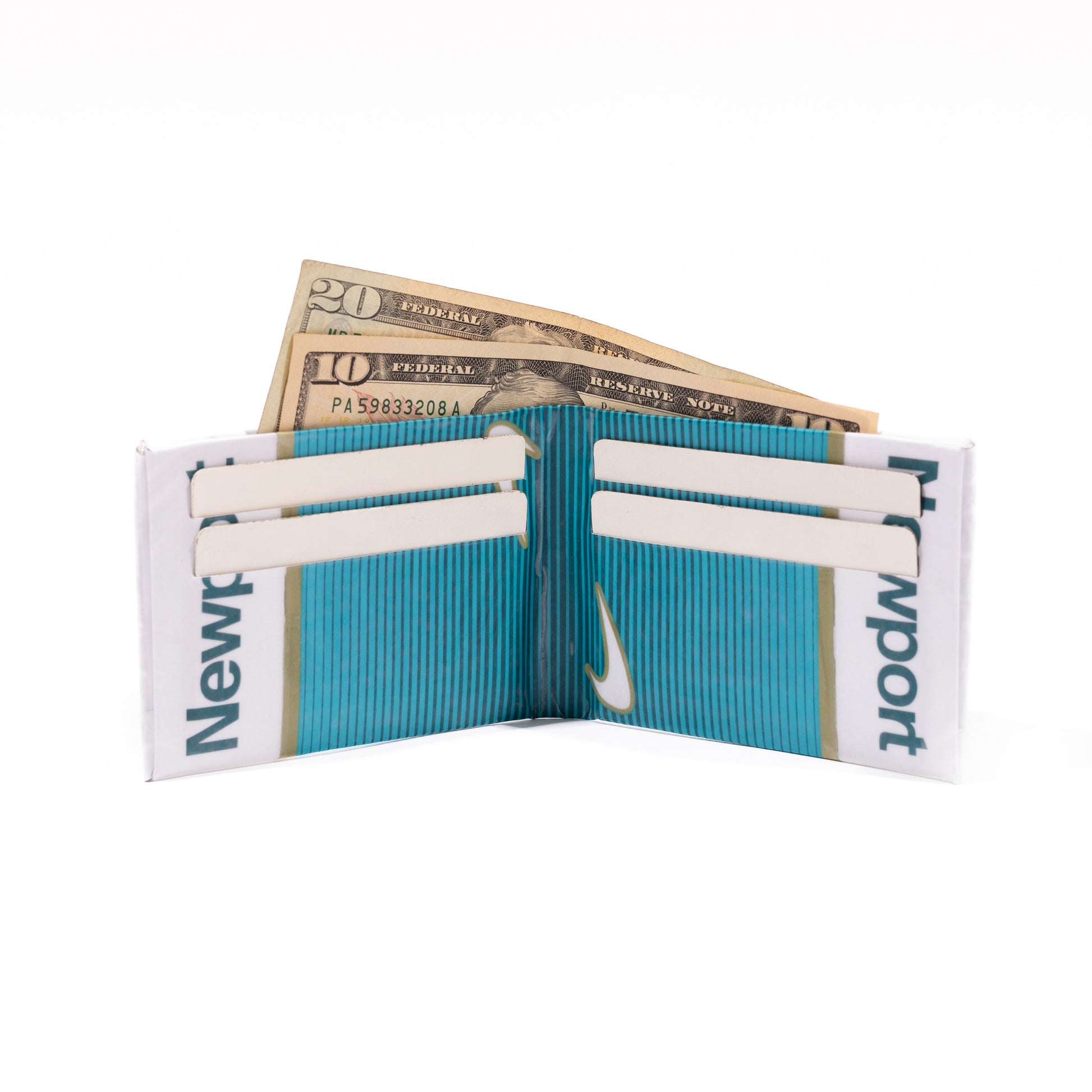 Handmade slim wallet crafted in San Francisco. Constructed from laminated photography and durable 3 mil vinyl laminate. Features four card slots and a dedicated pocket for cash.