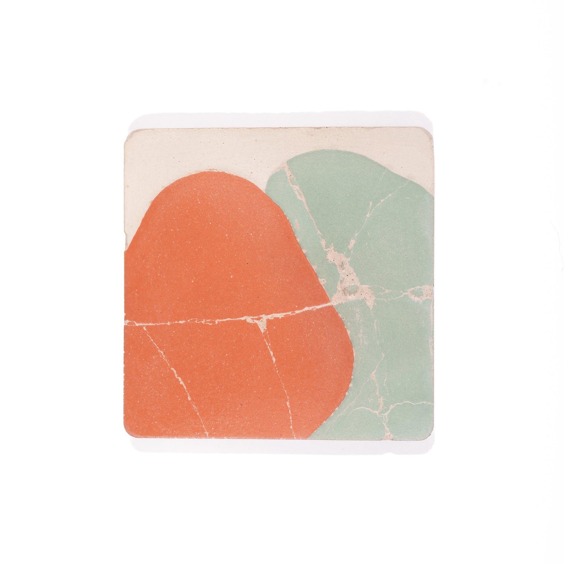 Hand-cast concrete coaster set in red, green and white. Finished with polyurethane for protection.
